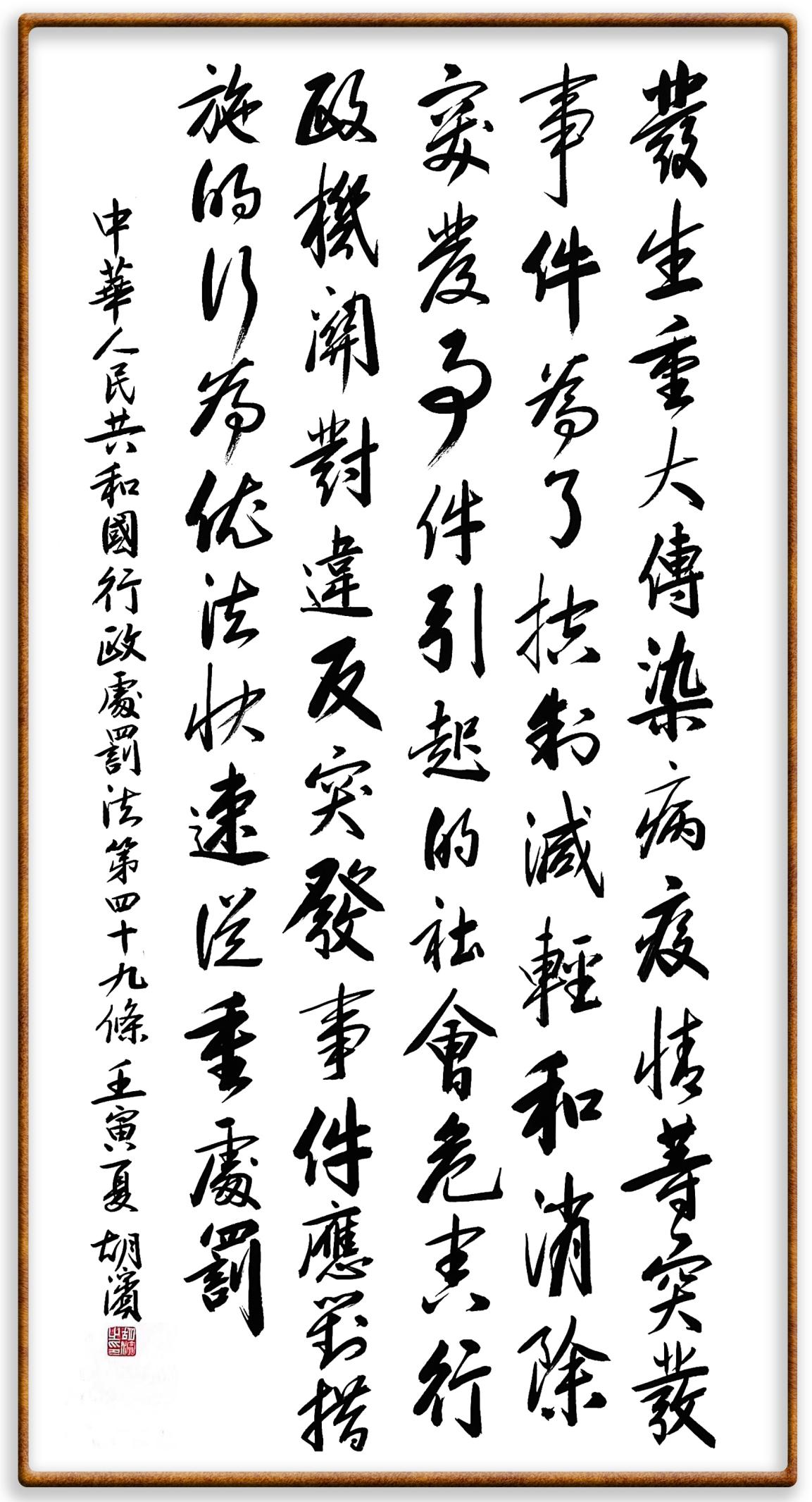 繼《中華人民共和國(guó)民法典》《中華人民共和國(guó)土地管理法》《中華人民共和國(guó)土地管理法實(shí)施條例》《中華人民共和國(guó)法律援助法》之后,法治日?qǐng)?bào)社聯(lián)合北京市司法局、北京市書(shū)法家協(xié)會(huì),將筆端對(duì)準(zhǔn)《中華人民共和國(guó)憲法》和《中華人民共和國(guó)行政處罰法》。
