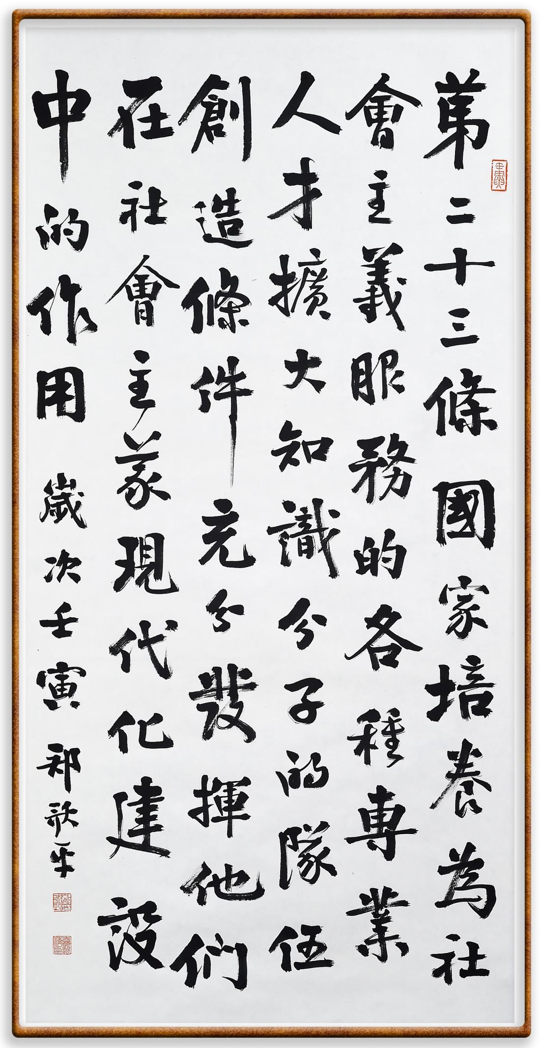 繼《中華人民共和國民法典》《中華人民共和國土地管理法》《中華人民共和國土地管理法實施條例》《中華人民共和國法律援助法》之后,法治日報社聯(lián)合北京市司法局、北京書法家協(xié)會,將筆端對準《中華人民共和國憲法》和《中華人民共和國行政處罰法》。