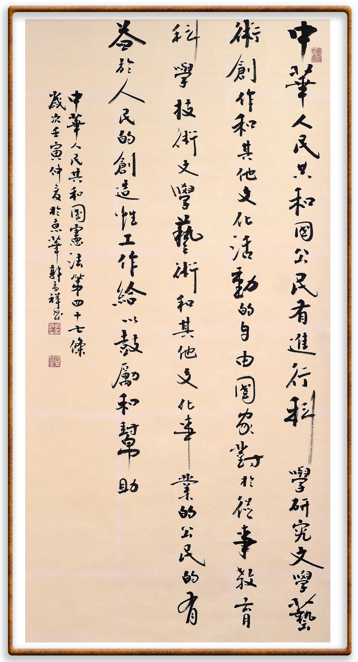 繼《中華人民共和國民法典》《中華人民共和國土地管理法》《中華人民共和國土地管理法實(shí)施條例》《中華人民共和國法律援助法》之后,法治日?qǐng)?bào)社聯(lián)合北京市司法局、北京書法家協(xié)會(huì),將筆端對(duì)準(zhǔn)《中華人民共和國憲法》和《中華人民共和國行政處罰法》。